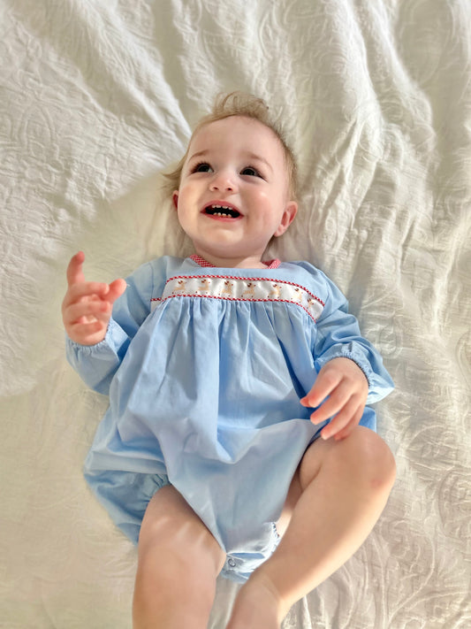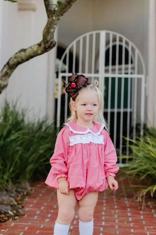 October Presale Boys Gingerbread Ribbon Bubble Romper