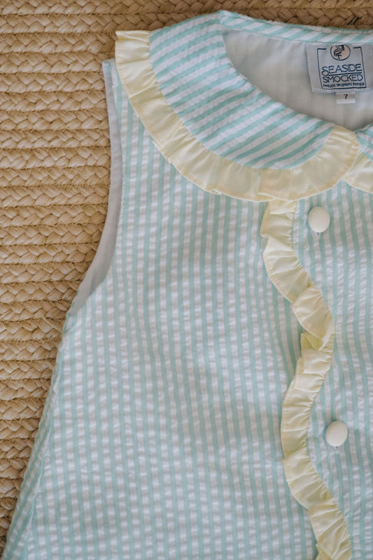 Bubble - Mint Striped Seersucker, Yellow Ruffle Trim