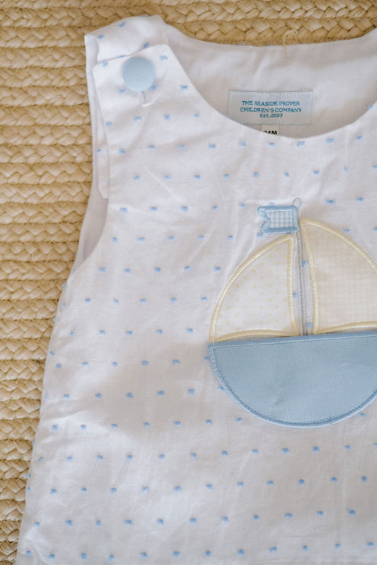 Boys Sailboat Pocket Appliqué Bubble Short Set