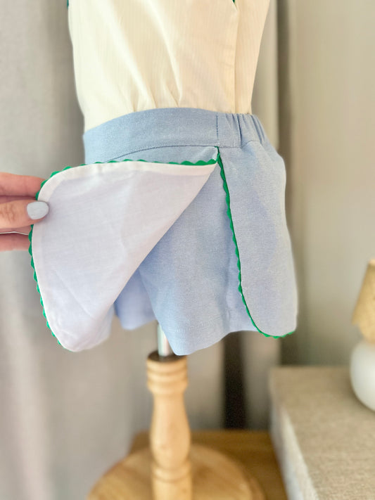 Golf Ribbon Yellow Mini Stripe Top & Blue Oxford Fabric Shortie Skort